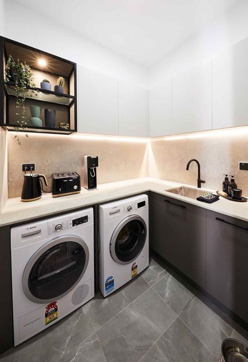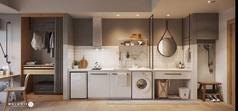 Thứ hai, tận dụng góc nhỏ ở bếp làm phòng giặt đồ. Đây là những ý tưởng hiệu quả được ứng dụng nhiều trong những ngôi nhà hiện đại, tiện nghi.