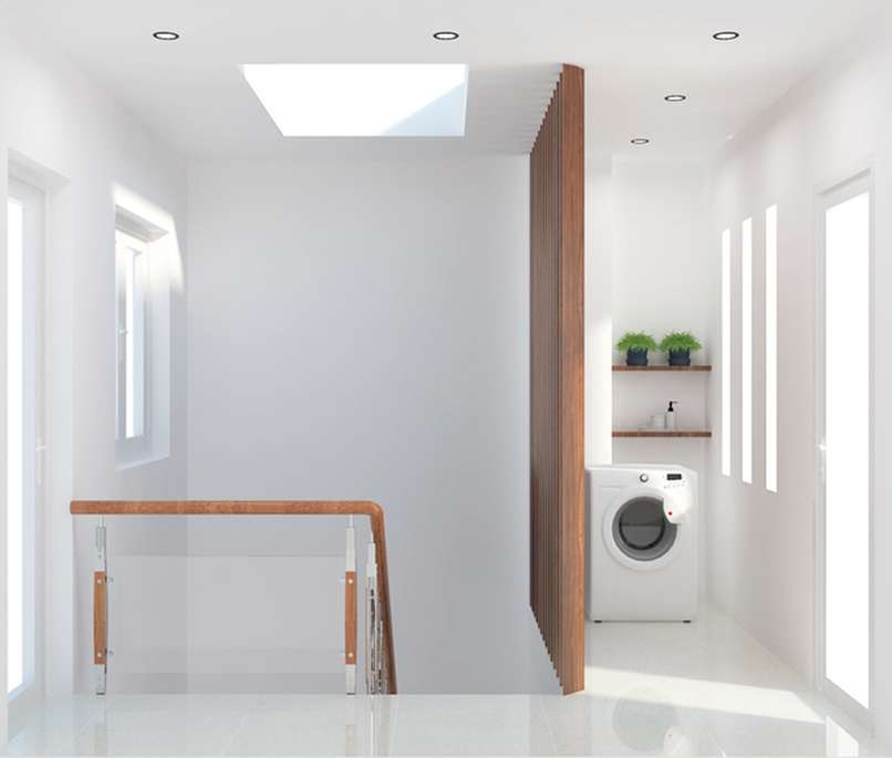 - Có thể tách khu vực giặt và phơi riêng biệt: Không nhất thiết phải sắp xếp việc giặt và phơi ở cùng một không gian, bạn có thể tận dụng những khu vực trống và phù hợp các chức năng khác nhau. Nó sẽ giúp những khoảng trống được tận dụng.