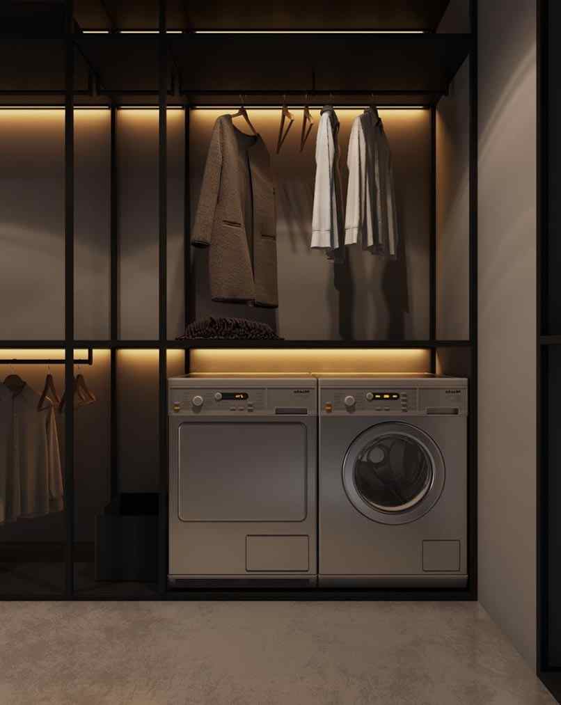 Thứ bảy, đặt khu vực phòng giặt đồ đẹp ở hành lang. Bạn có thể tận dụng khu vực này để bố trí những khu phòng giặt đồ đẹp, tiện nghi.