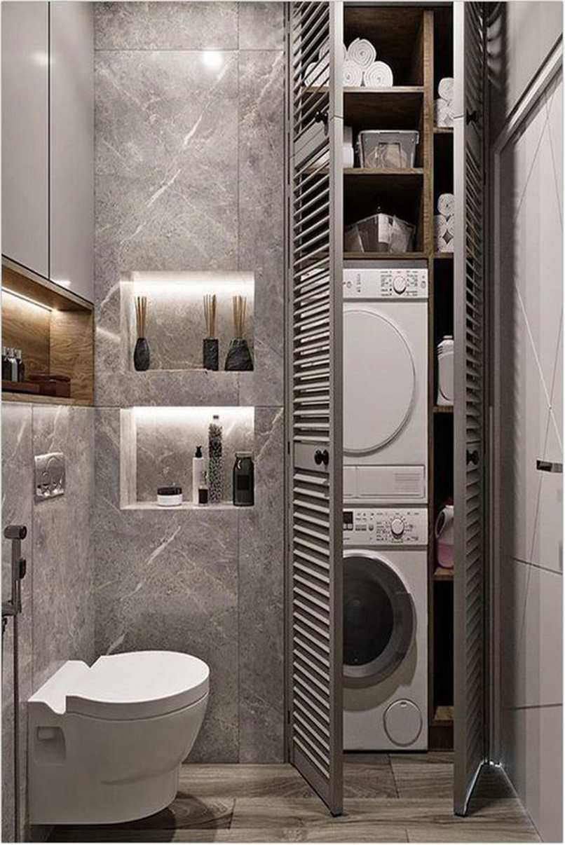 Thứ năm, kết hợp phòng giặt đồ và nhà vệ sinh. Rất nhiều ngôi nhà hiện nay thường chọn giải pháp thiết kế này để thuận tiện khi sử dụng và tạo nên giá trị thẩm mỹ. Nhưng với thiết kế này cần phải được tính toán ngay từ khâu xây dựng để đảm bảo nó không quá nhỏ.