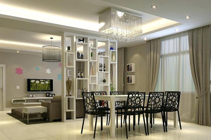Vách ngăn trang trí đẹp và đơn giản, ngăn cách phòng bếp và khách nhằm tạo nên sự riêng tư và tính thẩm mỹ. Đây cũng là giải pháp tiết kiệm được chi phí xây dựng vừa tiện lợi trong quá trình sử dụng.