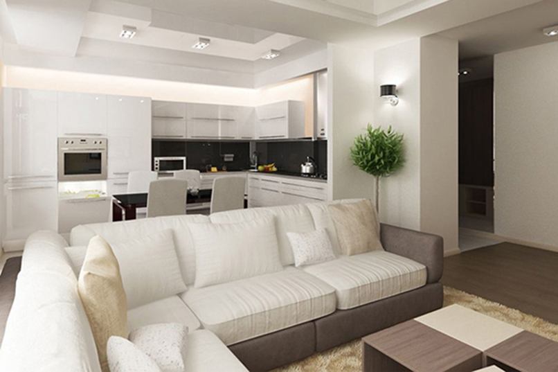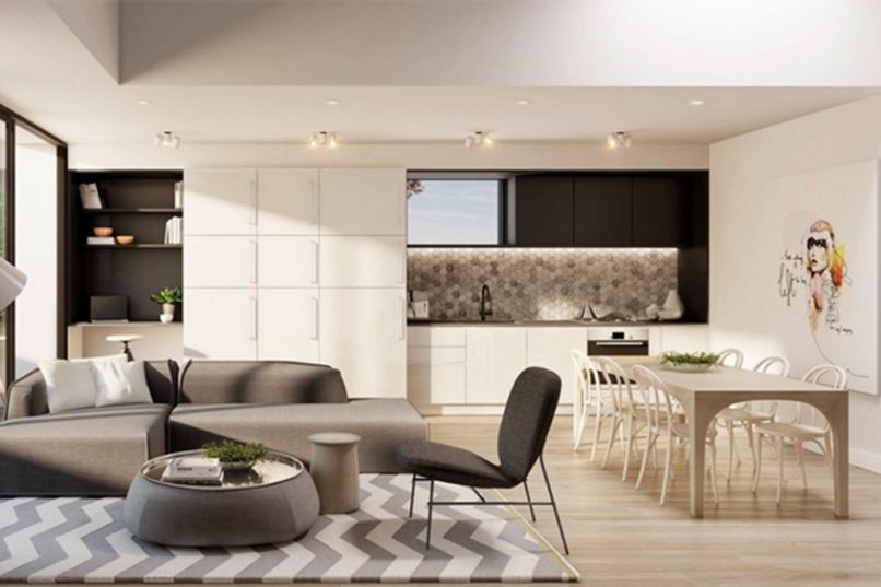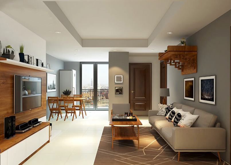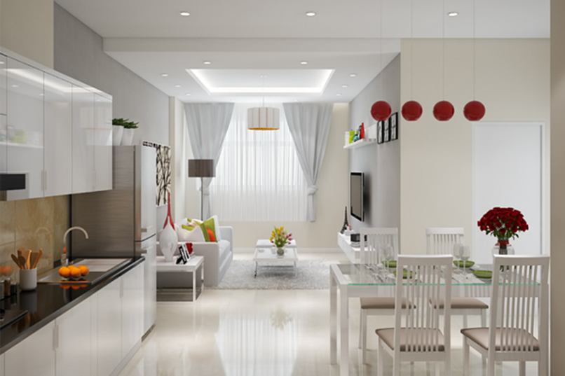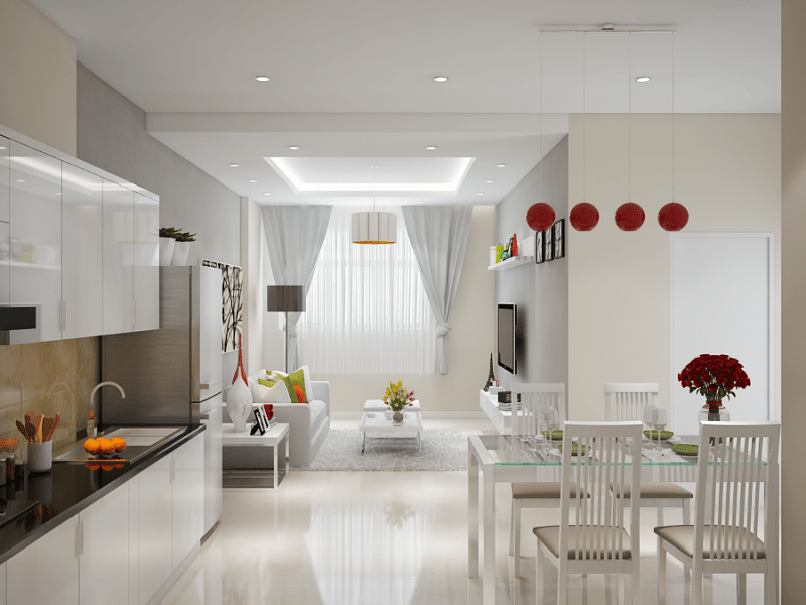 3.1 Phòng khách liền bếp 20m2 không có vách ngăn
