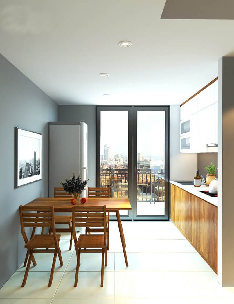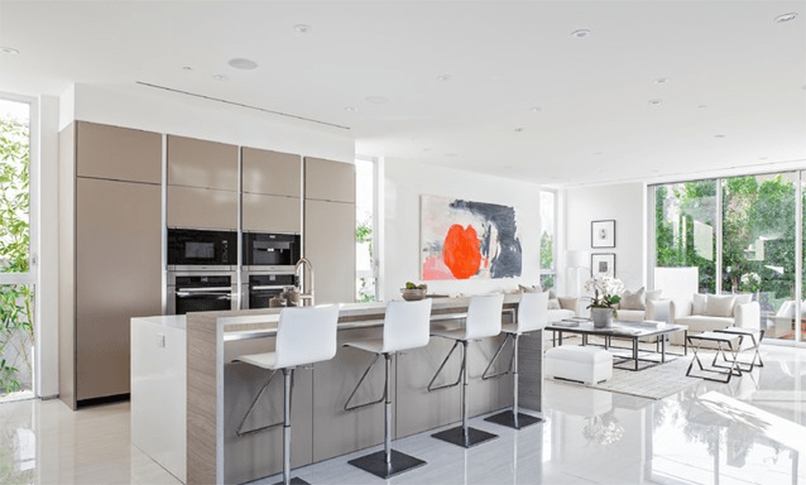 Bởi lẽ khi thiết kế không gian phòng khách liền bếp 20m2 gia chủ sẽ được gợi ý đến việc bố trí cửa sổ lớn hoặc các cửa lùa lấy ánh sáng. Việc mở rộng không gian thì cảm quan cũng đồng nghĩa với việc ánh sáng tự nhiên sẽ được phân bố rộng rãi hơn, không chỉ ở phòng khách hay gian bếp riêng biệt.