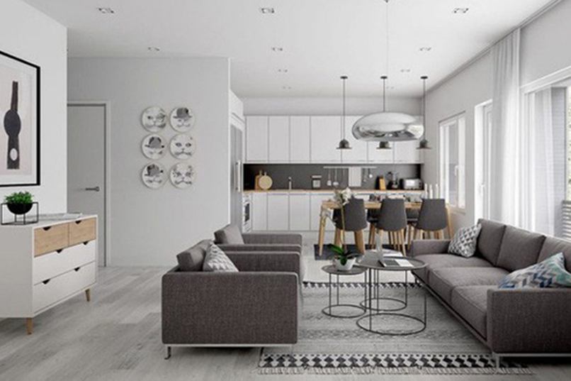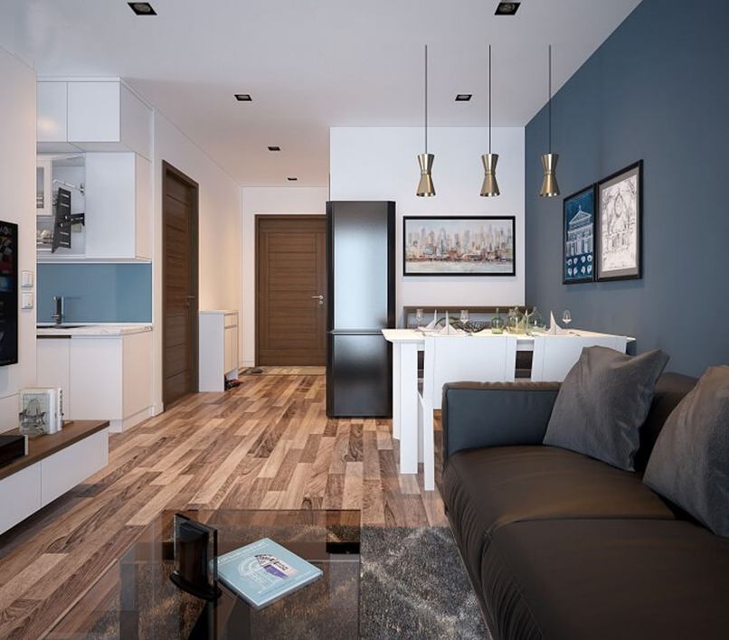 2.3 Phòng khách liền bếp 20m2 giúp tối ưu không gian