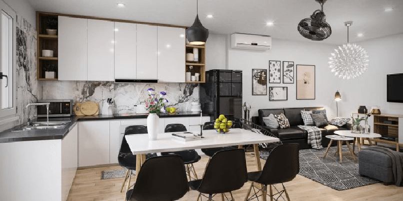 4. Những ý tưởng thiết kế phòng khách liền bếp 20m2 đẹp