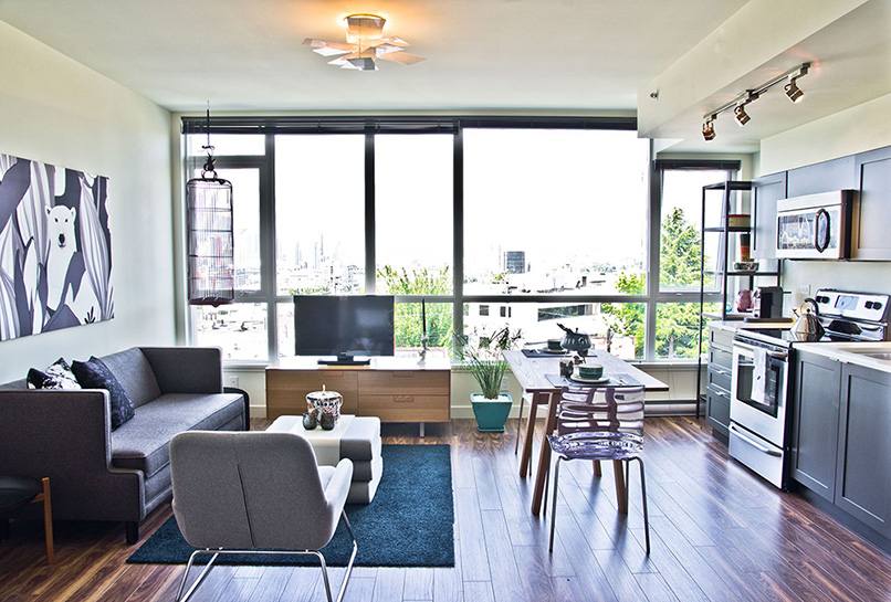 Nội thất luôn là điểm cần quan tâm dù trong bất kể một cách thiết kế nào và phòng khách và bếp thông nhau cũng vậy. Nếu phòng hẹp và nhỏ hãy ưu tiên phong cách hiện đại, tối giản và đơn sắc.