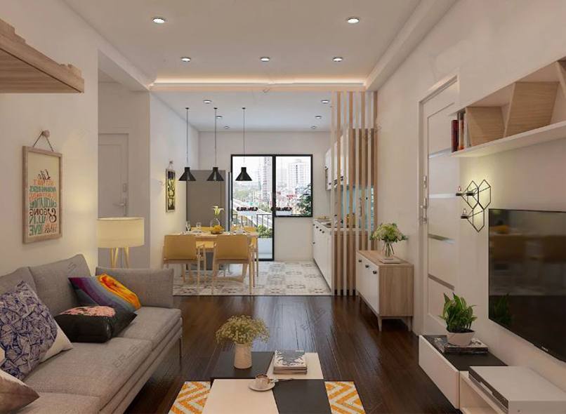 Thiết kế phòng khách liền bếp hiện đại và tối giản tạo nên một không gian hài hòa và đầy đủ công năng. Hiện nay đối với những căn hộ chung cư thường có 56m2 gồm 2 phòng ngủ, 1 phòng khách, 1 bếp và 1 nhà vệ sinh nên việc thiết kế phòng khách và bếp thông nhau được lựa chọn khá nhiều.