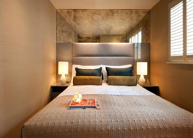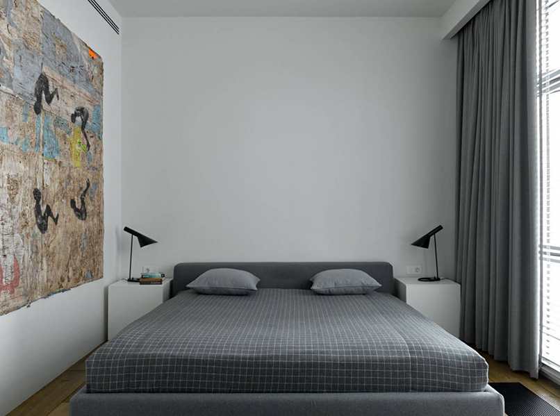 Tất cả những gì bạn cần chọn là một chiếc bàn nhỏ đầu giường, một tủ ngăn kéo tối giản, một chiếc đèn ngủ và một chiếc giường. Ở đây, bạn cũng không nên cố gắng đặt một chiếc giường ngủ có bản lề, có rèm mà nên đặt nó trên một mặt phẳng.