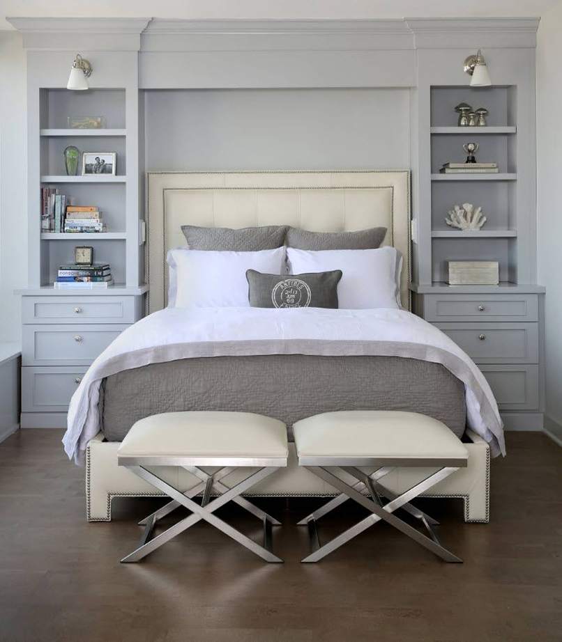 Trang trí phòng ngủ với nhiều món đồ nội thất phụ. Sẽ an toàn hơn nếu chọn những hình dạng đơn giản không có ở tiền cảnh trong bố cục của căn phòng và chỉ trở thành phông nền cho những món nội thất chính.