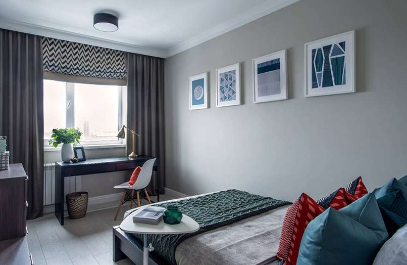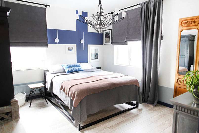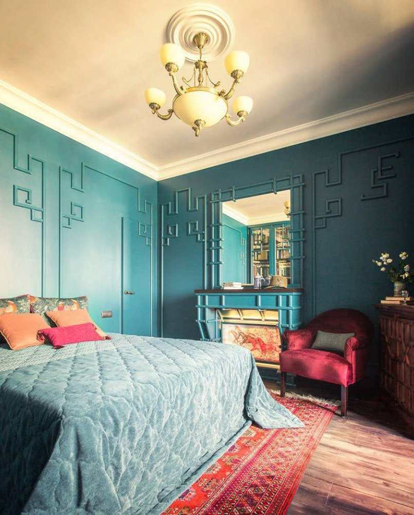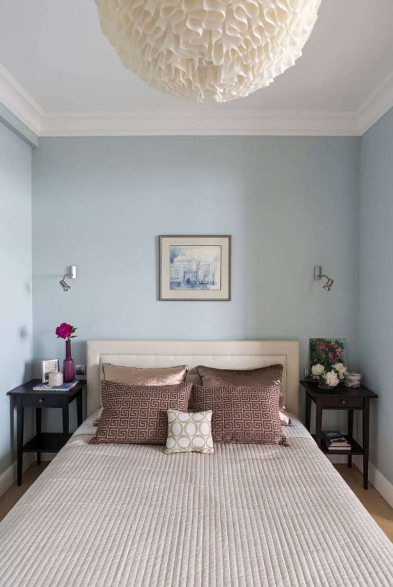 Ví dụ, trong cách bố trí phòng ngủ, một bức tương được sơn bằng sơn sáng màu sẽ hoạt động hoàn hảo. Sau đó, bức tường phía sau giường có thể được trang trí với tông màu bão hòa. Phần còn lại của bề mặt nên được sơn bằng màu phấn. Cách tiếp cận này không chỉ hiện đại, hợp thời mà còn phản ánh được tính cách của cư dân trong căn hộ.