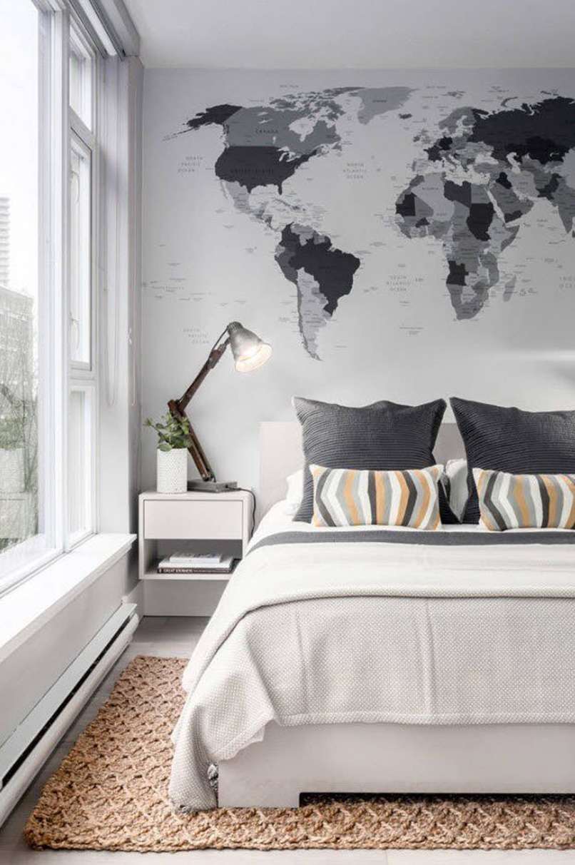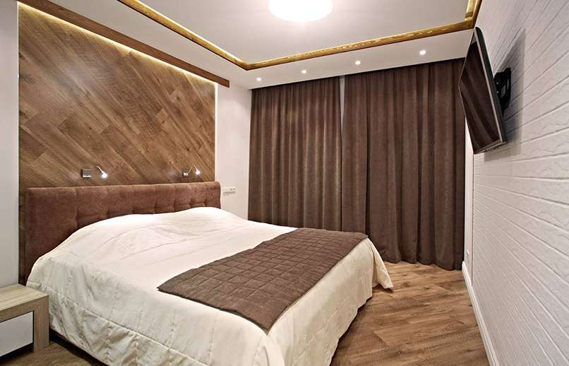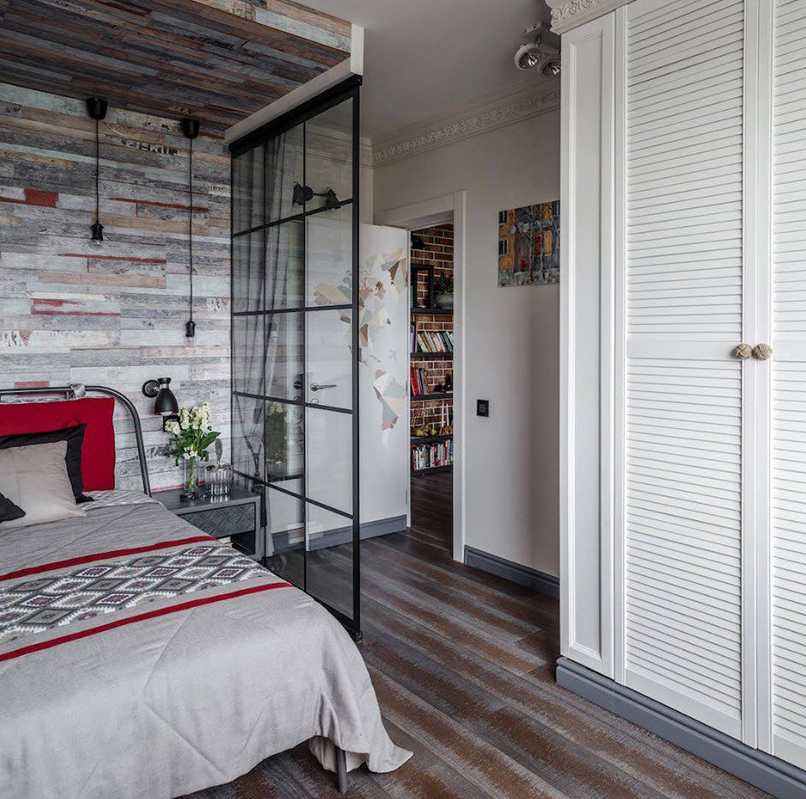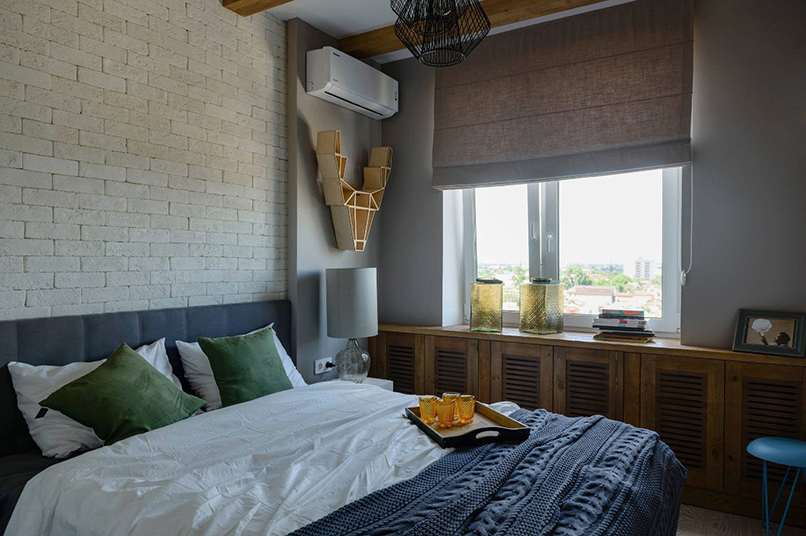 Bạn có thể sử dụng các chi tiết trang trí tương tự được sử dụng trong phòng ngủ lớn: bê tông, gạch hoặc gỗ trên tường. Bạn chỉ cần thực hiện một cách khéo léo, chẳng hạn chỉ phủ vật liệu lên một bề mặt không làm hỏng tổng thể nội thất.