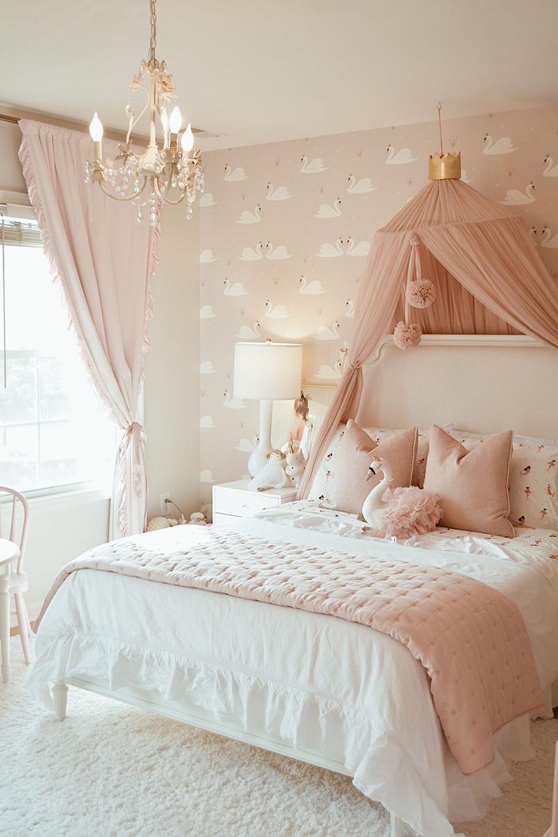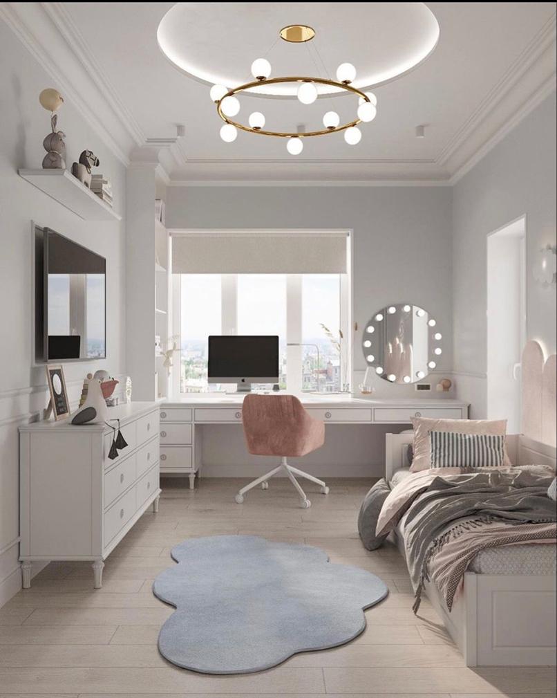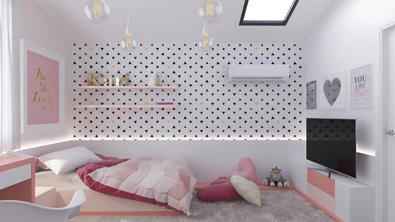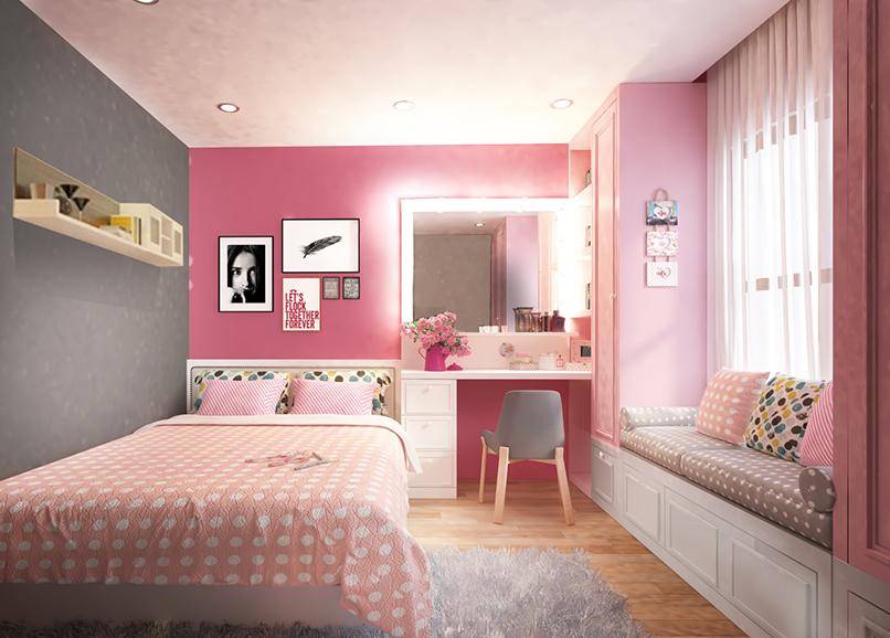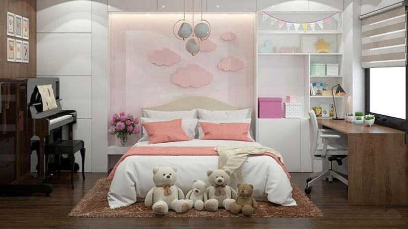 Đối với những bé gái ở độ tuổi này thì không gian cần sắp xếp hợp lý hơn, thiết bị nội thất cần có như: giường, tủ quần áo, bàn trang điểm, giá sách…. Nếu những bé gái yêu thích gì đặc biệt như âm nhạc, mỹ thuật,… thì có thể dùng những thứ liên quan để trang trí.