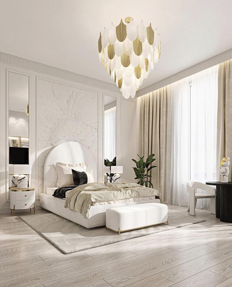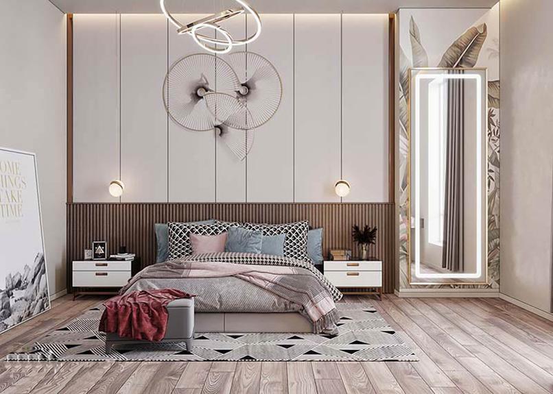 Thứ ba, bố trí không gian tràn ngập ánh sáng. Phòng ngủ đầy đủ ánh sáng tự nhiên và nhân tạo để đáp ứng chiếu sáng ngày và đêm. Ánh sáng tự nhiên tận dụng các khung cửa sổ, đèn nhân tạo nên chọn các loại đèn đặc biệt có ánh sáng phù hợp.