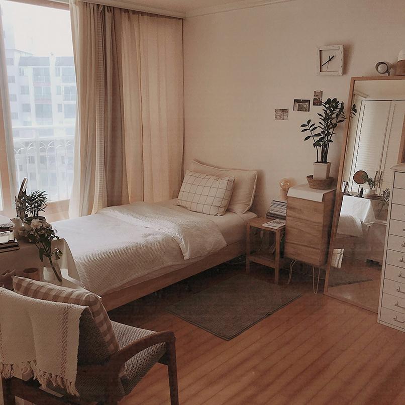 Thứ hai, bố trí nội thất đơn giản và tính tế. Chọn nội thất cũng là một trong những yếu tố quan trọng đối với không gian phòng ngủ. Đồ nội thất không chỉ đáp ứng được nhu cầu sử dụng của một cô bé 18 tuổi mà còn phù hợp với khiếu thẩm mỹ của người ở trong đó.