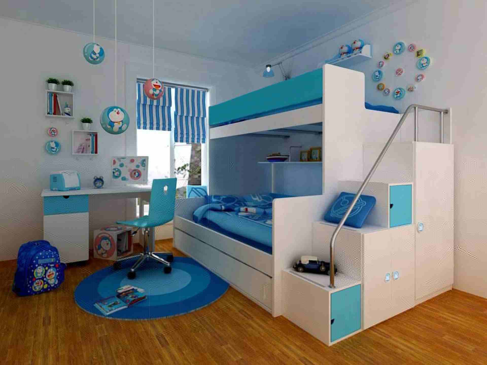 Khi trang trí phòng ngủ Doraemon cho trẻ em, cha mẹ không những phải chú ý đến màu sắc, họa tiết mà cần chú ý đến những món đồ nội thất trong phòng bé nữa. Bởi tất cả đều phải có mối tương quan cũng như thống nhất để trẻ có thể rèn luyện được tính logic, màu sắc phù hợp giúp kích thích trí não của bé.