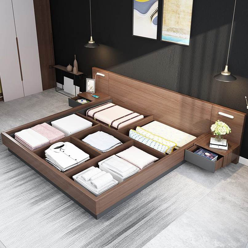 Một chiếc giường bệt đơn giản sẽ khiến bạn bất ngờ khi nó có thể đi kèm theo những công năng khác. Chẳng hạn như một vài ngăn kéo ẩn dưới gầm giường hay những hộc tủ vô cùng tiện lợi.