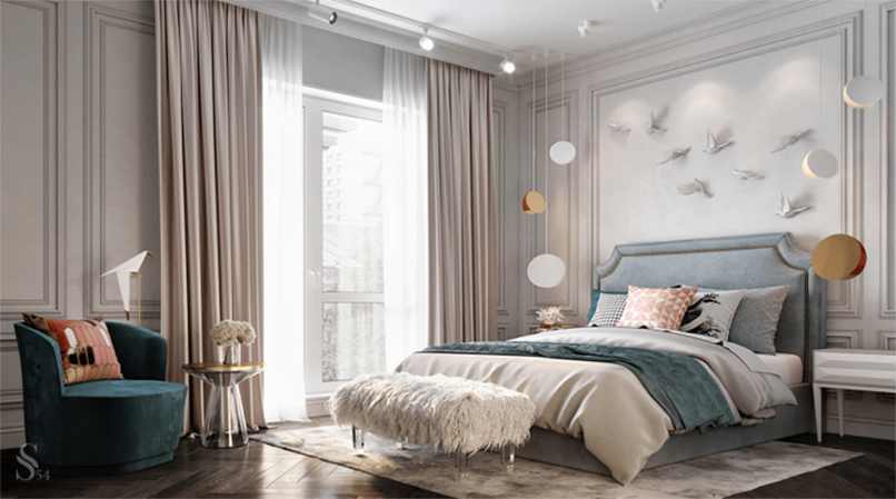 1.1 Phối màu phòng ngủ màu trắng sữa làm sao để không bị đơn điệu