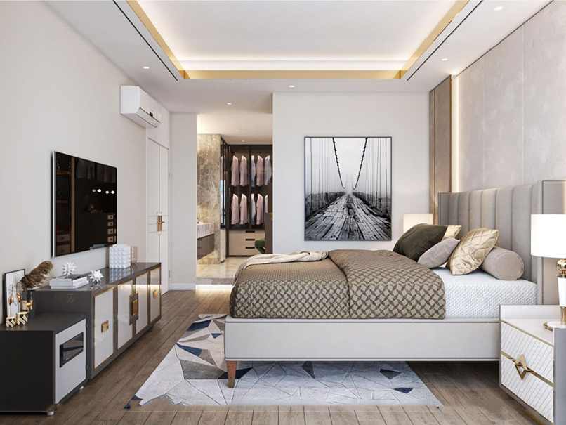 Thường những phòng ngủ màu trắng sữa sẽ mang đến sự trống trải, gia chủ nên chọn những điểm nhấn nhẹ nhàng như: tranh, cây xanh, đèn ngủ… để mang đến sức sống, tạo phong cách riêng cho căn phòng.