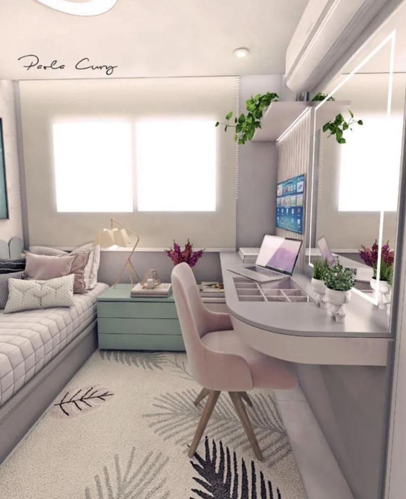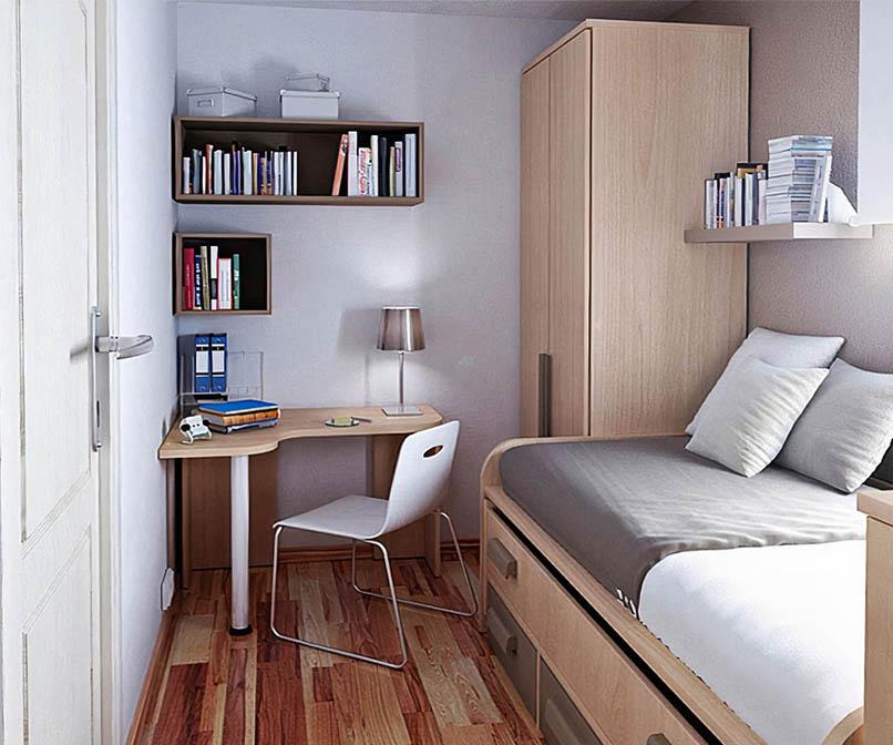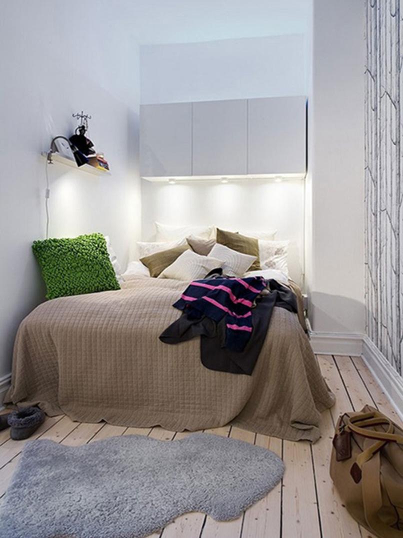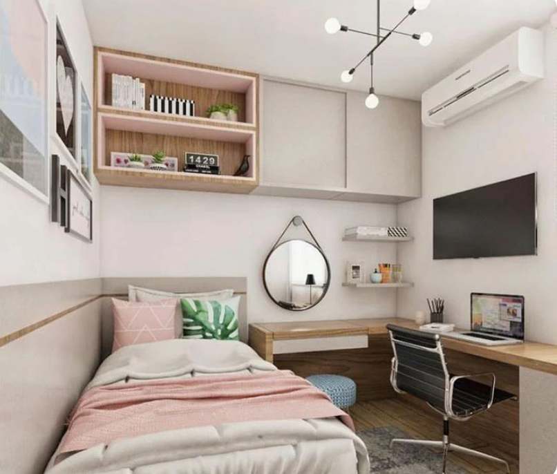 Thứ ba, lựa chọn nội thất treo tường để tận dụng mọi không gian. Vì diện tích khá hạn chế nên dùng nội thất treo tường như là một phương án “cứu rỗi” không gian một cách nhanh nhất. Những món có thể gọi đến như: Kệ sách, kệ đồ, gương soi, hộc tủ, bàn làm việc,… Điều này vừa giúp tiết kiệm không gian vừa giúp trang trí căn phòng của bạn thêm mới lạ và đặc biệt.