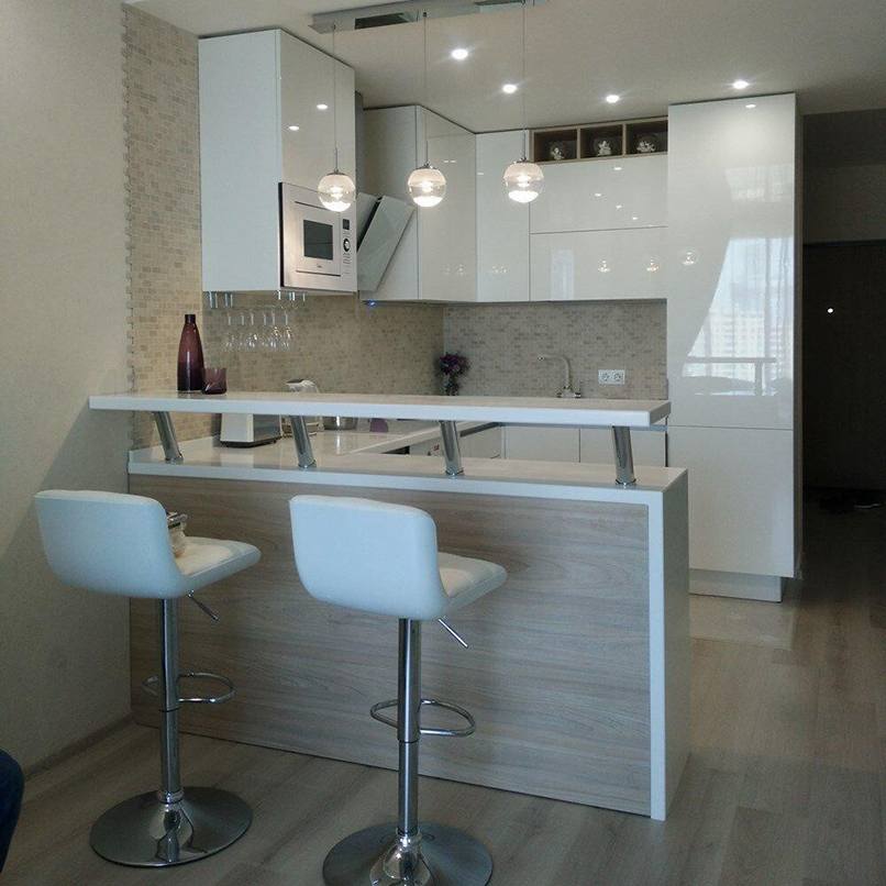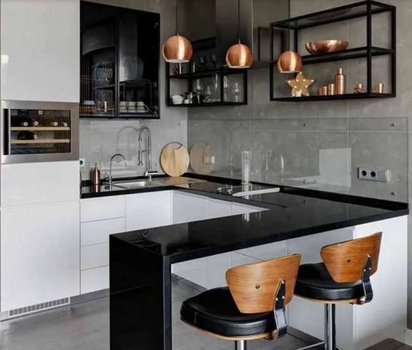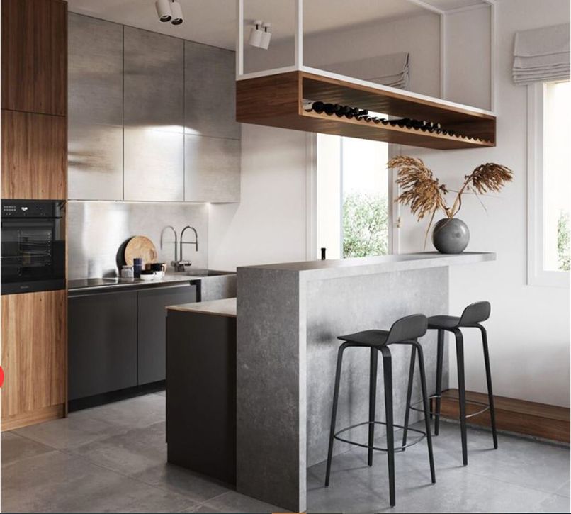 - Kiểu dáng: Kiểu dáng phù hợp cho quầy bar này giúp không gian trở nên đẹp và tiện dụng hơn. Những kiểu dáng có thể thực hiện các chung cư mini kiểu chữ C, U, L, kiểu I đơn giản.