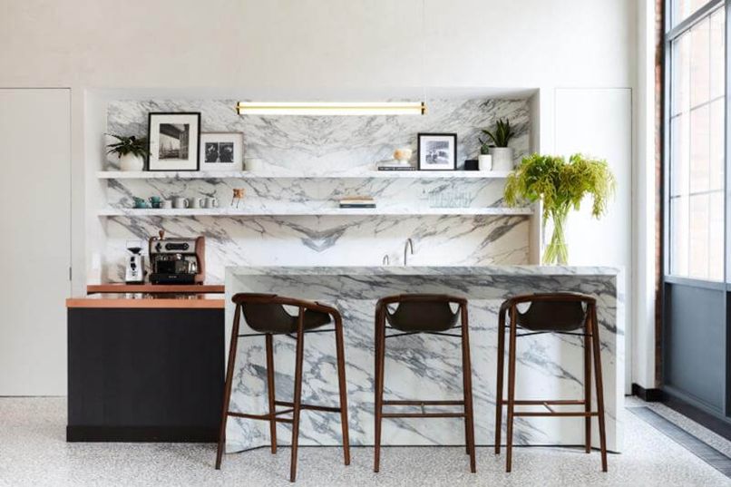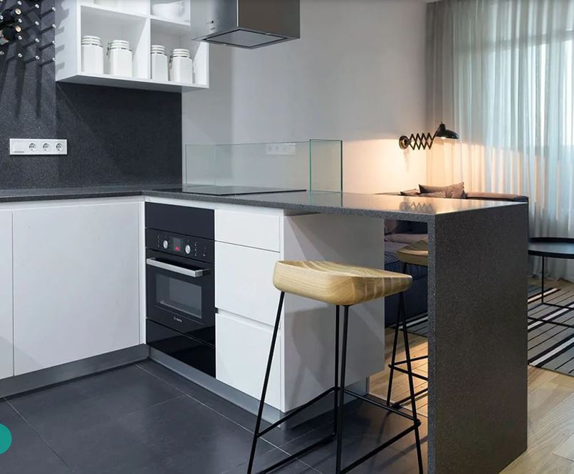Thứ hai, tận dụng làm vách ngăn. Nếu căn hộ của bạn thuộc kiểu không gian khiêm tốn thì bạn có thể tận dụng luôn quầy bar này để làm vách ngăn phân chia khu vực. Nó không chỉ làm không gian thông thoáng mà còn mang lại sự tiện nghi cho người sử dụng.