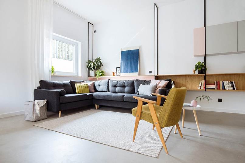 Bạn cũng nên lưu ý chọn mua thảm trải sàn phòng khách có kích thước nhỏ hơn ghế sofa sao cho chân ghế không đè lên thảm.