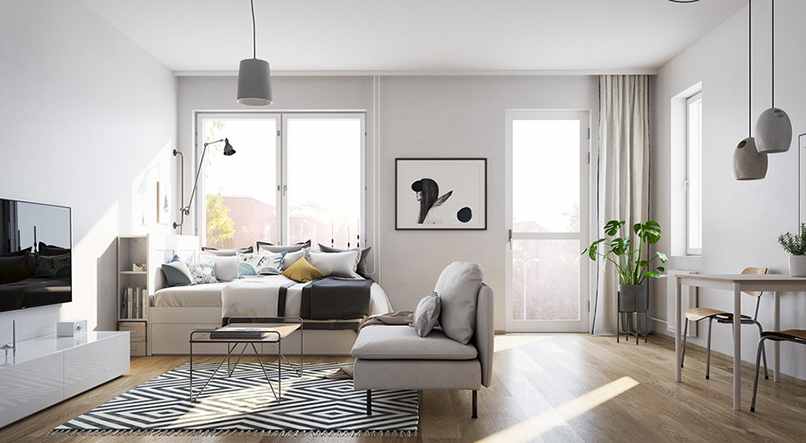 Một chiếc thảm quá nhỏ không bao quanh được không gian ngồi hoặc chỉ vỏn vẹn dưới bàn phòng khách sẽ làm căn phòng của bạn bị thu hẹp cảm giác nhìn, trông nhỏ hơn.