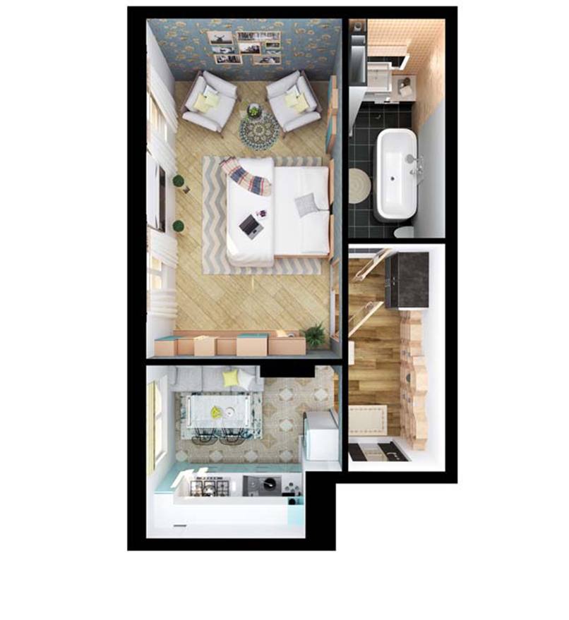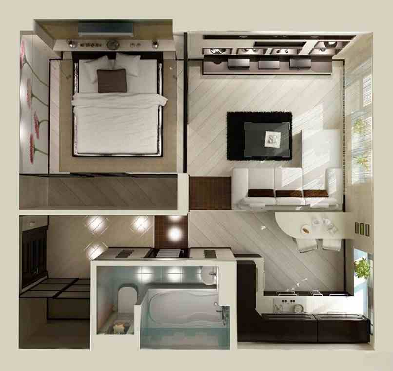 4. Những ý tưởng Thiết kế căn hộ 1 phòng ngủ đẹp, độc đáo