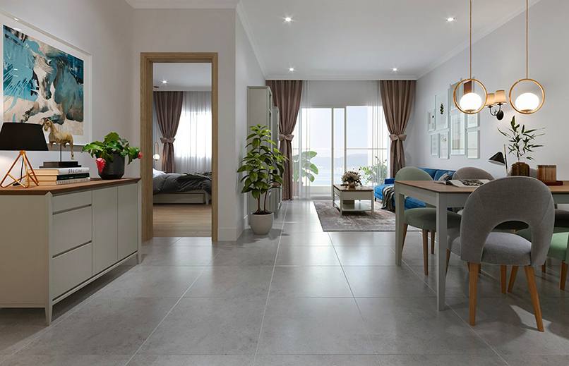 Cuối cùng, hạn chế những vách ngăn phân chia không gian. Đối với những căn hộ diện tiến nhỏ thì việc sử dụng quá nhiều vách ngăn phân chia không gian là không cần thiết. Vì nó sẽ khiến diện tích trở nên chật hẹp và ngột ngạt hơn. Nếu muốn phân chia không gian thì có thể dùng các tủ, kệ sách… để tăng không gian lưu trữ mà không mất đi tính thẩm mỹ.