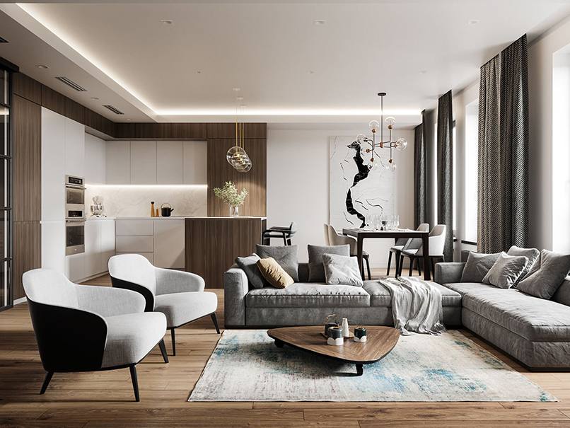 3.1 Áp dụng phong cách hiện đại cho Thiết kế căn hộ 1 phòng ngủ