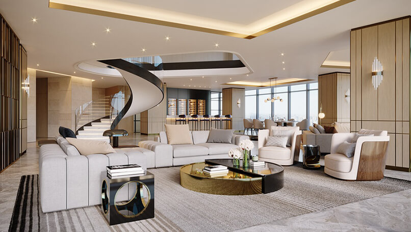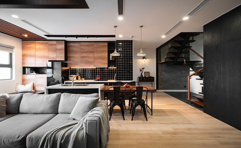 Thứ ba, nội thất sang trọng, cao cấp. Tất nhiên đối với mẫu thiết kế căn hộ duplex này thì nội thất thường được bố trí ở mức chi phí tương xứng rồi. Nhưng nội thất sẽ được quyết định theo sở thích của gia chủ, thiết kế nội thất căn hộ duplex thường dùng ccas vật liệu cao cấp như: gỗ, đá granite, thép không gỉ….