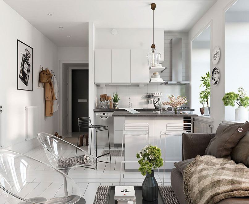 Nếu như bạn đang muốn thiết kế căn hộ studio 30m2 thông thoáng, rộng rãi thì đừng bỏ qua mẹo nhỏ dưới đây. Đó là sử dụng những món nội thất có thiết kế chân cao, hình dáng gầy. Những chiếc bàn, ghế, tủ có chân nhỏ, cao sẽ giúp căn phòng trở nên thoáng đãng hơn. Nhưng nếu đồ quá đồ sộ và kế thấp sát đất sẽ khiến không gian trở nên chật chội. Thêm vào đó, việc chọn những món đồ nội thất “cao, gầy” như vậy cũng sẽ tiện lợi hơn trong việc dọn dẹp nhà cửa.