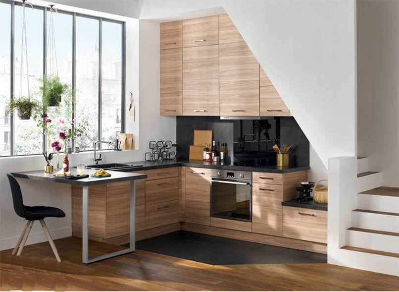 Thứ ba, cách bố trí tủ bếp dưới cầu thang hợp lý. Với căn bếp nào cũng vậy, tủ bếp sẽ đi liền với bếp nấu và chậu rửa ở trên. Ở dưới là tủ lạnh đựng những dụng cụ để nấu nướng, bát đũa. Nếu gầm cầu thang nhà bạn có diện tích lớn, có thể thiết kế tủ bếp hình chữ L thì làm, nếu không thì tạo một quầy bar nhỏ.