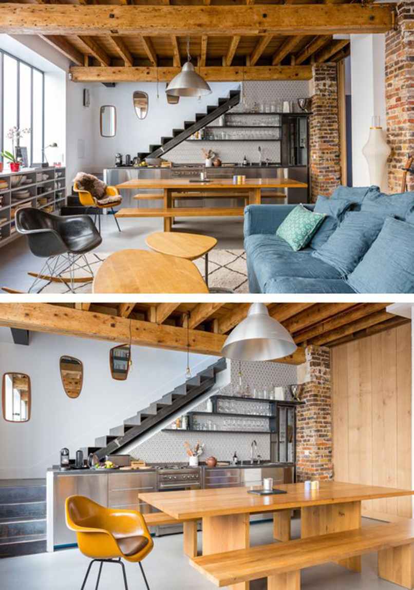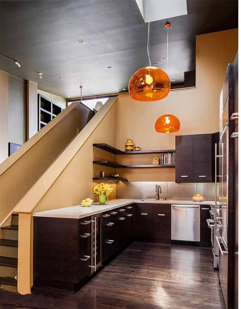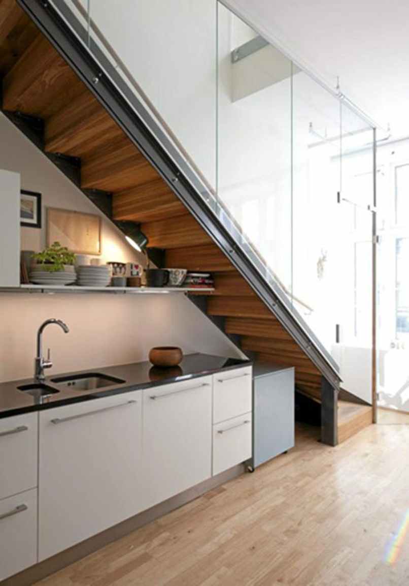 1. Những ý tưởng thiết kế cầu thang ở phòng bếp đẹp