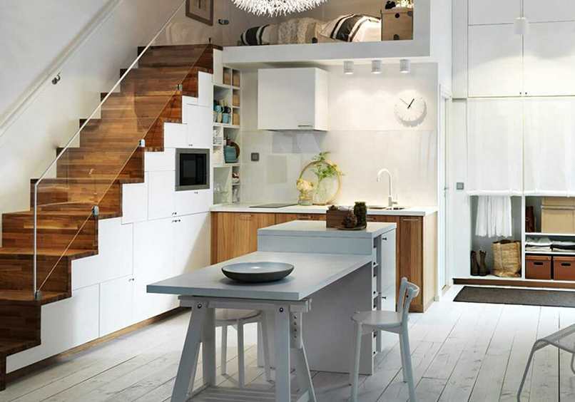 Thứ nhất, tiết kiệm không gian. Với những ngôi nhà biệt thự sân vườn hay biệt thự phố có diện tích rộng rãi thì việc bố trí nội thất khá dễ dàng. Nhưng đối với những căn nhà nhỏ có diện tích eo hẹp về diện tích thì việc bố trí đầy đủ các không gian đầy đủ tiện ích không phải điều đơn giản. Thiết kế cầu thang ở phòng bếp là giải pháp tuyệt vời để mang tới một không gian tiện nghi hơn trong một không gian chật hẹp.