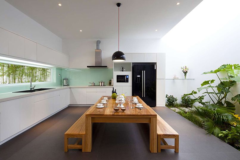 Thứ nhất, không gian mở giúp người sống hài hòa với thiên nhiên. Không gian sinh hoạt đan xen với không khí của tự nhiên giúp tạo sự thoải mái nhất cho những thành viên trong gia đình.