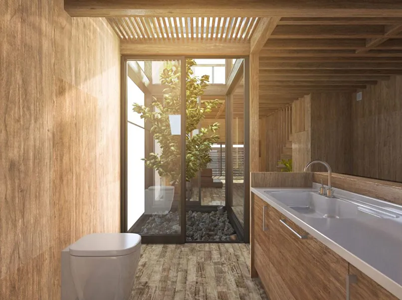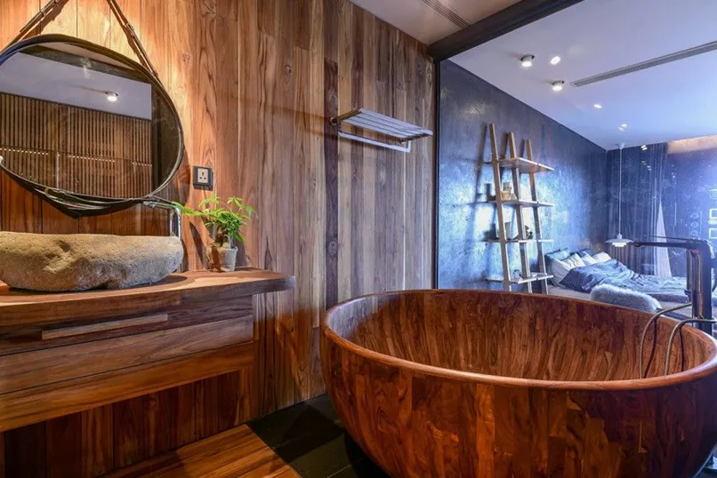 Thứ hai, về chất liệu. Loại chất liệu thông dụng trong các thiết kế nhà vệ sinh kiểu nhật là đá, gạch, gỗ. Đặc biệt là gỗ, nó được ứng dụng để làm các món như bồn tắm, cửa, sàn nhà, kệ đựng đồ,…