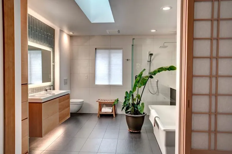 Thứ tư, hệ thống ánh sáng. Đối với những thiết kế nhà vệ sinh kiểu nhật thì luôn chú trọng đến khâu ánh sáng, nhất là ánh sáng tự nhiên.