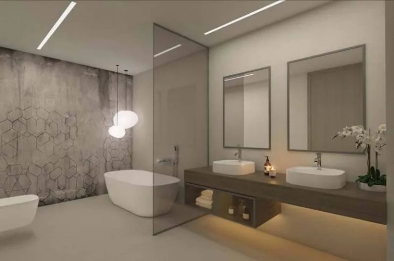 - Khu vực khô: Nơi diễn ra các hoạt động như rửa tay, thay quần áo, trang điển,… đi kèm là các thiết bị như bệ rửa, lavabo, gương soi và thông thường sẽ được bố trí gần với lối cửa ra vào cửa nhà tắm.
