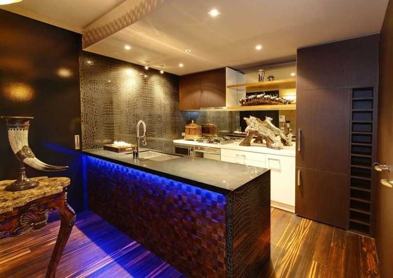Nhân tiện, các tấm tre không chỉ dùng để lát sàn mà còn dùng để làm trần nhà. Chúng được cố định trực tiếp vào trần nhà cơ bản hoặc trên một thùng treo và mọi thứ góp phần tạo ra cảm giác hiện diện phi thường trong túp lều thực sự của Châu Phi.