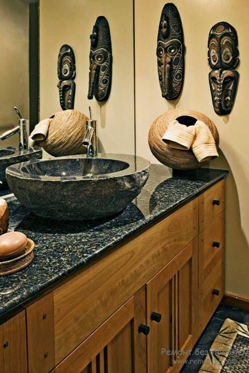 Đối với đồ nội thất, cũng cần phải nhớ rằng vật liệu tự nhiên hoặc giả chất lượng cao của chúng là tiêu chí chính. Nếu chúng ta nói về Châu Phi, các vật liệu cơ bản là mía, gỗ hồng sắc, tre, đàn hương, mây, đất sét, da bò sát, da động vật, vỏ cọ,… độ nhám và độ nặng.