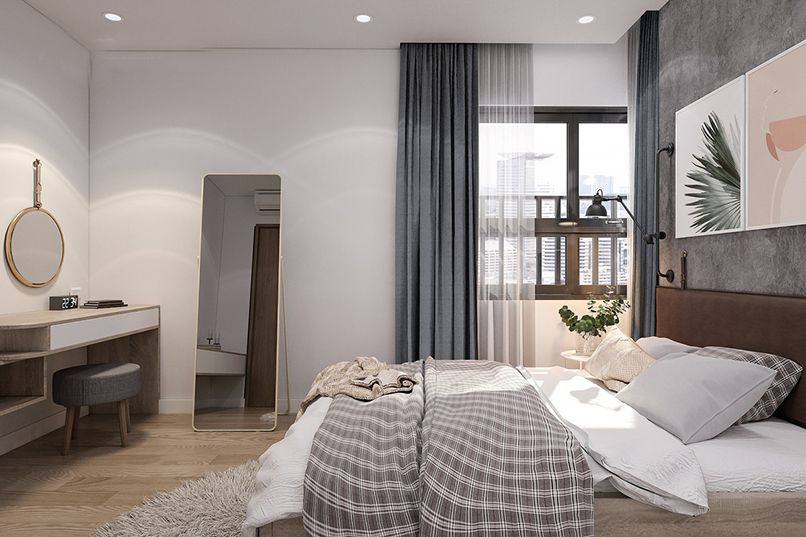 - Phòng ngủ nhỏ cộng thêm phần Logia nữa có diện tích 10m2. Những phòng này thường dùng cho trẻ nhỏ.