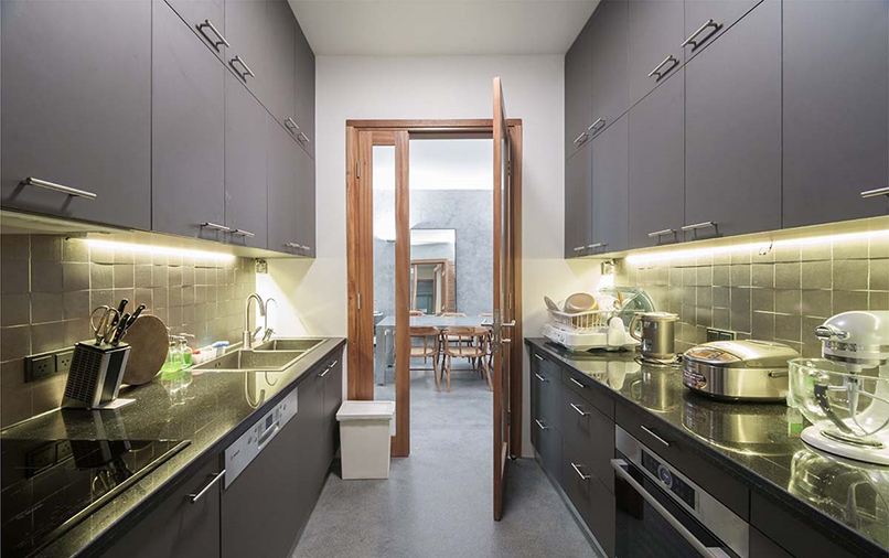 Thứ nhất, thiết kế không gian mở. Không gian nhà bếp được mở rộng nối liền với các không gian khác như phòng khách hay sân vườn. Nhờ đó mà căn phòng bếp trở nên thoáng đãng, rộng rãi không ám mùi thức ăn vào người.