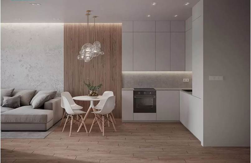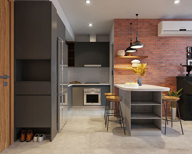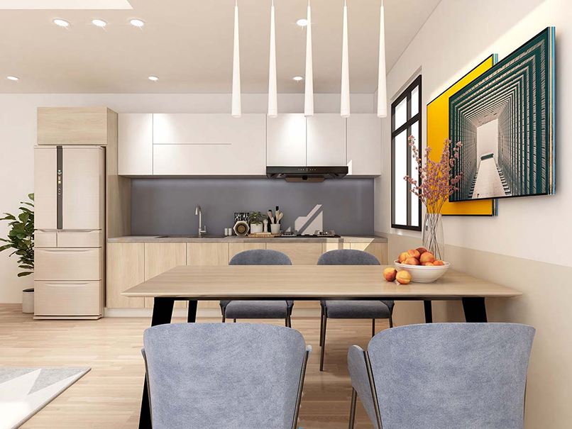 - Đối với những không gian nhỏ bạn không cần phải lo lắng về không gian chật chội vì các nhà thiết kế sẽ đưa ra phương án thiết kế nội thất phòng bếp đơn giản, tiện nghi nhất.