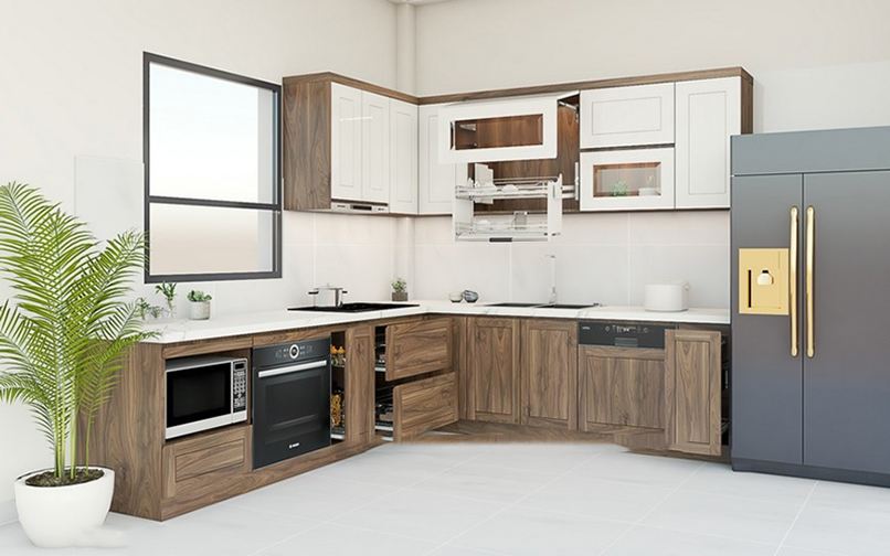 Cuối cùng, ưu tiên dùng tủ bếp thông minh. Tủ bếp thông minh sẽ có các ngăn kéo nhỏ, ngăn xếp bên trong tủ nhằm giúp người sử dụng có thêm không gian lưu trữ. Xu hướng sử dụng tủ bếp thông minh ngày nay đang dần được ưa chuộng bởi tính đa năng, tiện nghi mà nó mang lại.