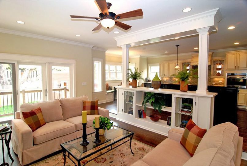 Bạn chỉ có thể để lại một phần của bức tường đã loại bỏ nếu diện tích cho phép. Nó có thể ở dạng vòm và để nhấn mạnh sự chuyển đổi từ phòng này sang phòng khác với chiếc đèn thu nhỏ.