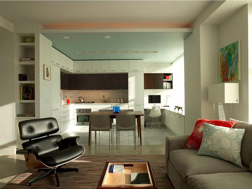 Sự khác biệt tương phản không nên làm mệt mỏi và không gây khó chịu cho những người đang ở trong phòng khách kết hợp bếp.