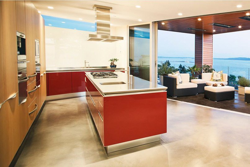 Các tầng lệch cũng rất phổ biến. Khu vực bếp có thể được nâng lên hoặc hơi lõm xuống so với mặt bằng của toàn bộ phòng khách. Bục nâng lên nửa bậc là một vỏ bọc tốt cho tất cả các hoạt động giao tiếp trong bếp. Và ngược lại, sàn trơn sẽ dễ tạo cảm giác sạch sẽ và ngăn nắp hơn. Trong trường hợp, điều quan trọng là chiều cao trần ban đầu là đủ.