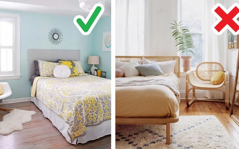 Thứ tư, đặt giường ở vị trí khoa học. Bạn nên kê giường ở vị trí sát tường, kế cửa sổ (nếu có). Tuỳ vào tình trạng căn phòng, nếu như chiều dài của căn phòng lớn hơn thì đặt giường nằm theo chiều rộng và nếu phòng cân đối về cả dài và rộng thì thoải mái chọn một bức tường mà kê.