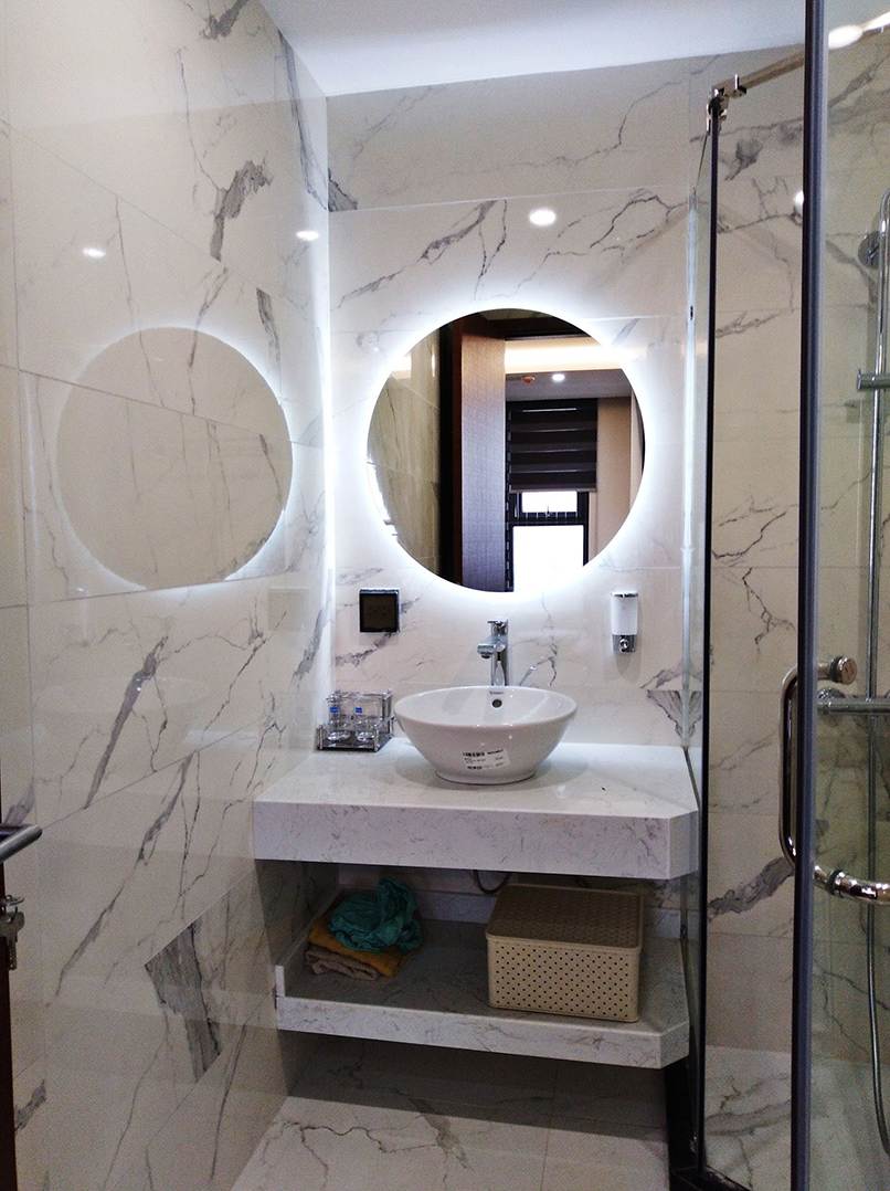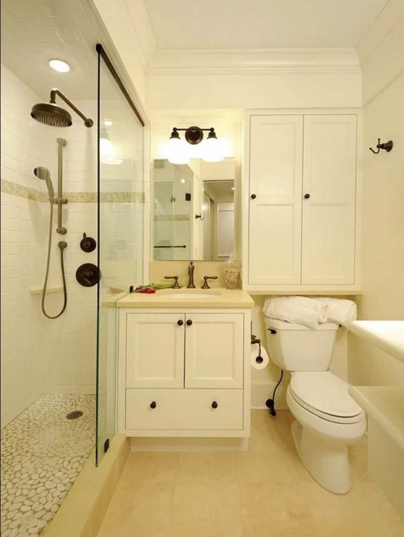Thứ bảy, sử dụng nhiều loại ánh sáng. Bằng việc dùng nhiều ánh sáng sẽ giúp phòng tắm diện tích nhỏ lúc nào cũng có đủ ánh sáng. Xua tan đi cảm giác chật, tạo cảm giác thoải mái và thư giãn.